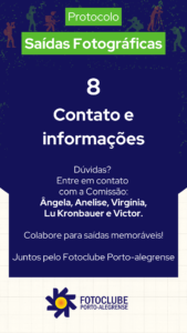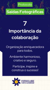 Por meio do compromisso de cada membro, a organização de saídas fotográficas se torna uma experiência enriquecedora para todos. Ao seguir essas orientações, garantimos um ambiente harmonioso, criativo e seguro para todos os participantes.